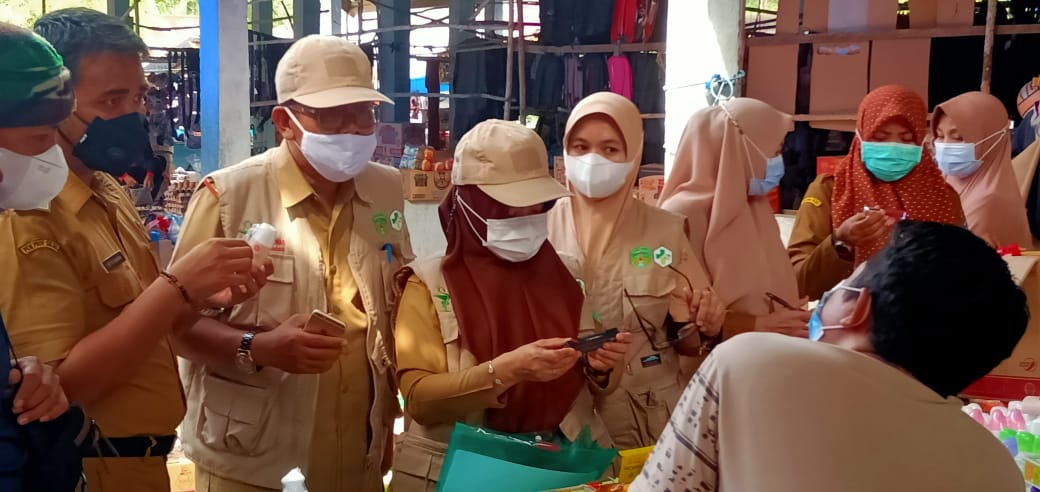 LUTIM – Camat Angkona, Ketut Riawan Budiarta mengapresiasi kinerja Tim koordinasi pengawas obat dan makanan Kabupaten Luwu Timur yang turun langsung ke pasar Desa Solo Kecamatan Angkona melakukan pengawasan terhadap obat dan makanan yang dijual pedagang di pasar tersebut, pada Selasa (27/04/2021).