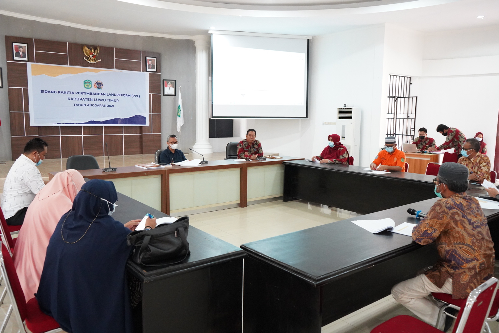LUTIM – Kantor Pertanahan (KPN) Kabupaten Luwu Timur melaksanakan sidang Panitia Pertimbangan Landreform (PPL) Tahun Anggaran 2021. Sidang pertimbangan dipimpin Bupati Luwu Timur, H. Budiman didampingi Kepala KPN Luwu Timur, Muhammad Syukur, yang berlangsung di Aula Rumah Jabatan Bupati, Jum’at (30/04/2021).