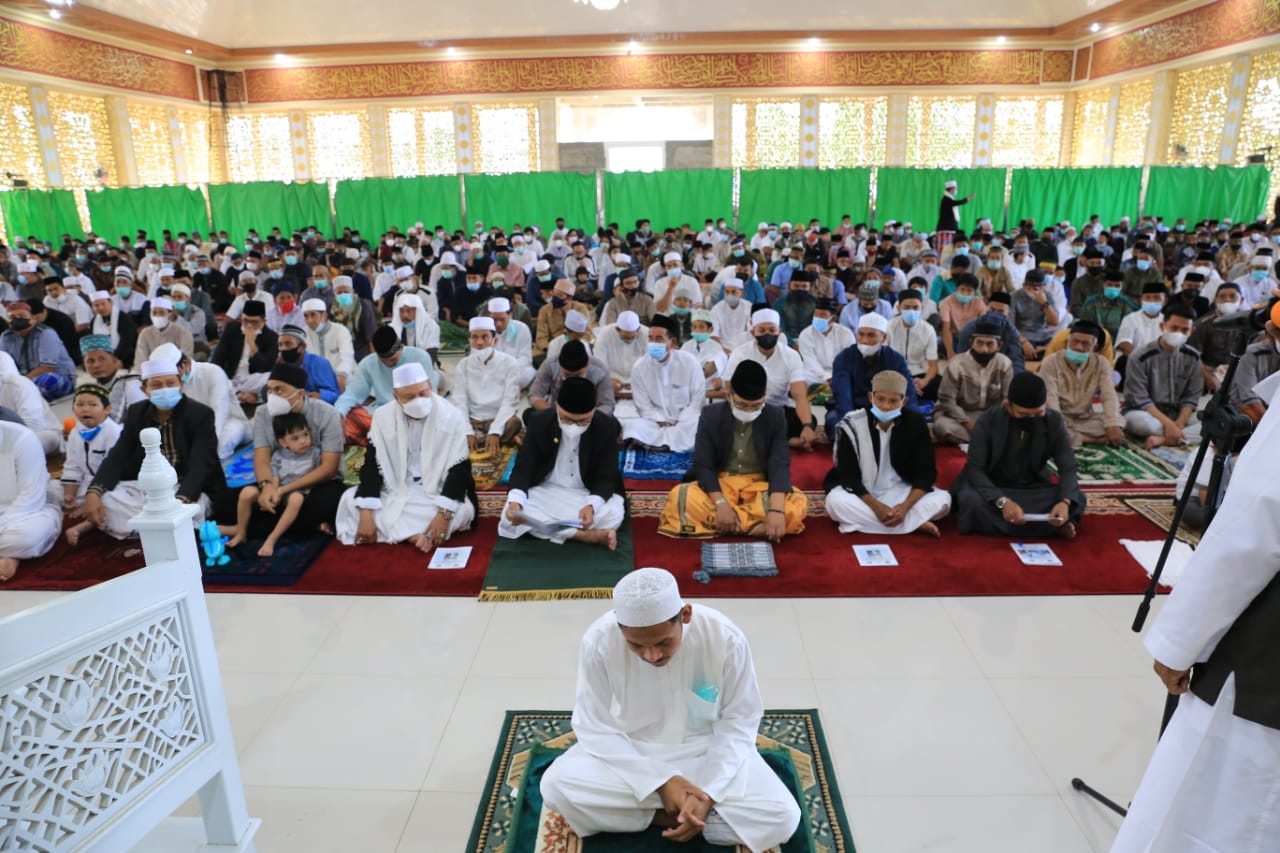 LUTIM – Bupati Luwu Timur, H. Budiman bersama Ketua TP PKK Luwu Timur, Hj. Sufriyati Budiman melaksanakan shalat idul fitri 1 Syawal 1442 H/2021 M, bertempat di Masjid Babul Khair, Desa Puncak Indah, Kecamatan Malili, Kamis (13/05/2021).