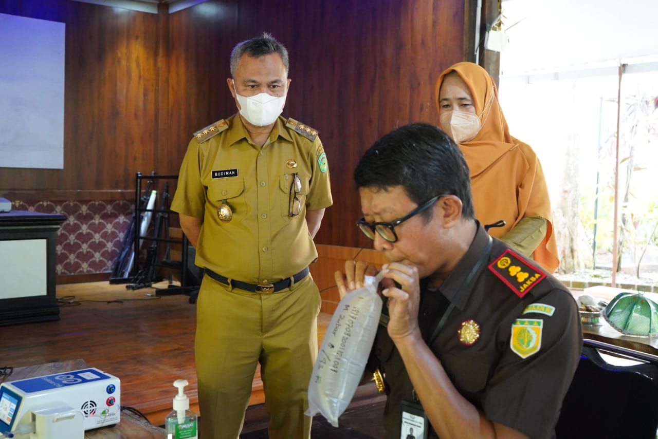 LUTIM – Pemerintah Kabupaten Luwu Timur menjadi Kabupaten pertama di Sulawesi Selatan yang menggunakan GeNose untuk mendeteksi virus Covid19, sekaligus menggelar pemeriksaan kepada Aparatur Sipil Negara (ASN) yang berlangsung di Kantor Bupati Lutim, Selasa (18/05/2021). Bupati Lutim, H. Budiman menjadi orang pertama yang menggunakan alat pendeteksi covid-19 tersebut.