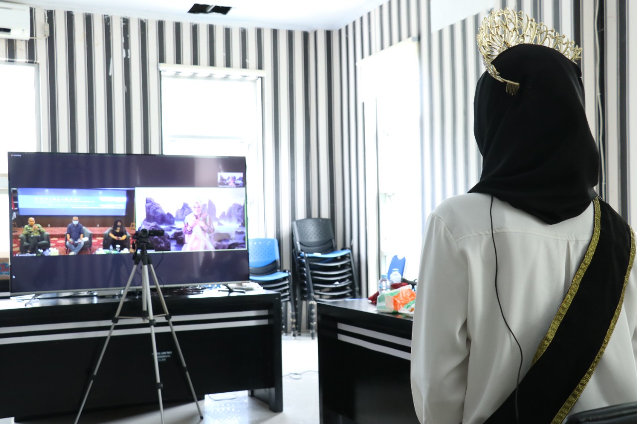 Sementara itu, proses pemilihan menuju lima besar, duta perwakilan Lutim dan peserta lainnya mengikuti tahap seleksi melalui pemberian pertanyan secara virtual oleh juri dan Aktris Melani Ricardo terhadap peserta, di Aula Dinas Pariwisata dan Kebudayaan, Rabu (16/06/2021).