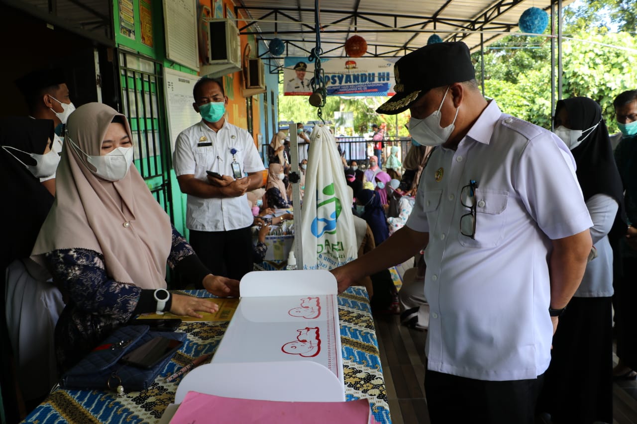LUTIM – Bupati Luwu Timur, H. Budiman dan Ketua TP – PKK, Hj. Sufriaty, didampingi Kadis Pengendalian Penduduk dan Keluarga Berencana (DPPKB) Kabupaten Luwu Timur, Nursih Hariani, memantau langsung Pelayanan Gerakan Bulan Tumbuh Kembang Balita di Posyandu.