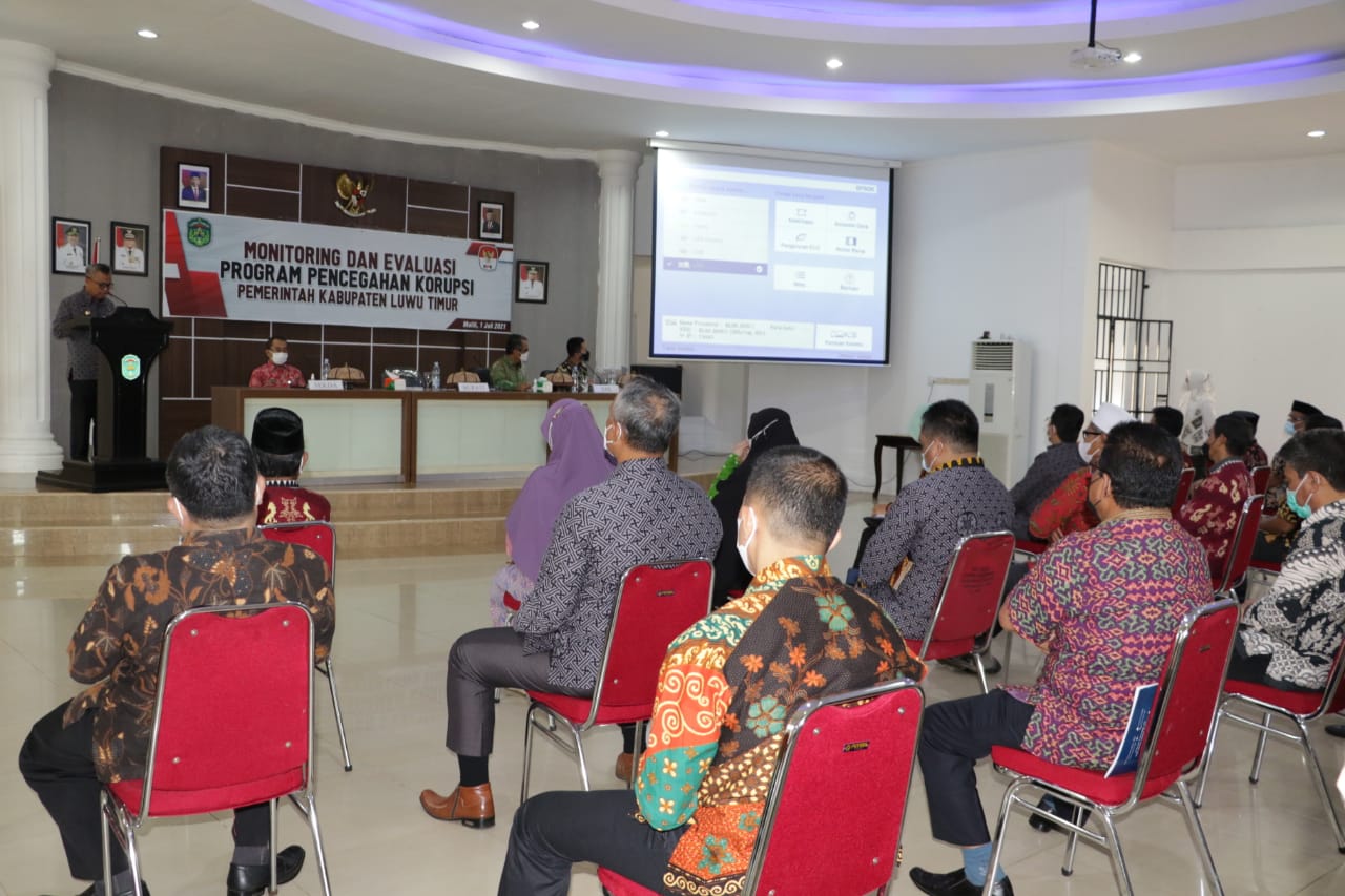 LUTIM – Tim Koordinasi Supervisi dan Pencegahan (Korsupgah) Komisi Pemberantasan Korupsi (KPK) Wilayah IV menggelar pertemuan bersama jajaran Pemerintah Kabupaten Luwu Timur dalam rangka monitoring dan evaluasi (Monev) Program Pencegahan Korupsi Terintegrasi di Kabupaten Luwu Timur.