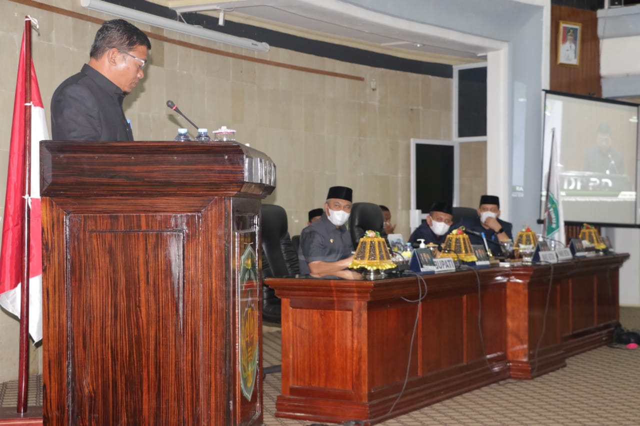 Sidang paripurna dengan agenda Penyampaian Pendapat Akhir Fraksi-Fraksi DPRD Luwu Timur terhadap Rancangan Peraturan Daerah Pertanggungjawaban Pelaksanaan APBD Tahun Anggaran 2020 dihadiri Bupati Luwu Timur, H. Budiman, anggota DPRD dan para kepala OPD lingkup Pemkab Lutim.