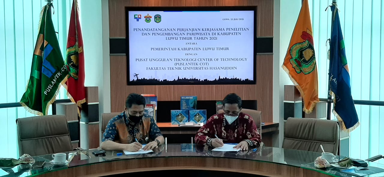 Penandatanganan perjanjian kerjasama (MoU) tersebut dilakukan oleh Kepala Bappelitbangda Lutim, Dohri As’ari dan Kepala Pusat Puslantek-COT, Dr. Eng. Ir. Nasruddin, ST., MT, di JK-CoT Building Faculty of Engineering Gowa Campus, Jl. Poros Malino Km. 6 Bontomarannu, Gowa, Kamis (22/07/2021).