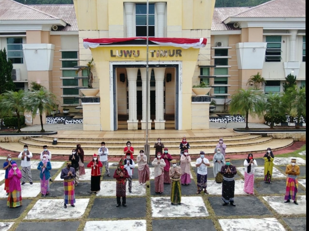 LUWU TIMUR – Nuansa budaya nusantara hari ini, Selasa (10/08/2021), terasa di lingkungan Pemerintah Kabupaten Luwu Timur (Lutim) dimana seluruh Aparatur Sipil Negara (ASN) di Lingkup Pemerintah Kabupaten Luwu Timur menggunakan pakaian Adat Nusantara ke kantor.
