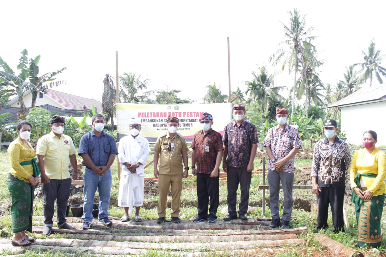 LUWU TIMUR – Parisada Hindu Dharma Indonesia (PHDI) Kabupaten Luwu Timur bakal memiliki gedung Sekretariat. Hal itu ditandai peletakan batu pertama pembangunan gedung sekretariat PHDI oleh Bupati Luwu Timur, H. Budiman, didampingi Plt. Camat Tomoni Timur, Zulkifli, dan Ketua PHDI Luwu Timur, Wayan Sudino, di Desa Kertoraharjo, Kamis (12/08/2021).