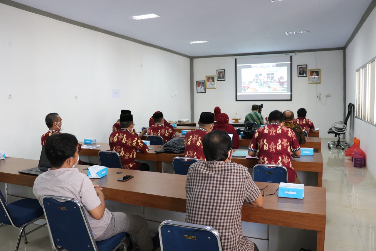 LUWU TIMUR – Bupati Luwu Timur, H. Budiman didampingi Sekretaris Daerah, H. Bahri Suli, Kabag Organisasi, Hj. Asmah Sari dan Kepala OPD, mengikuti Evaluasi Sistem Akuntabilitas Kinerja Intansi Pemerintah (SAKIP) lingkup Pemkab Lutim yang diselenggarakan oleh KemenpanRB secara virtual di Aula Media Center Dinas Kominfo Lutim, Jumat (27/08/2021).