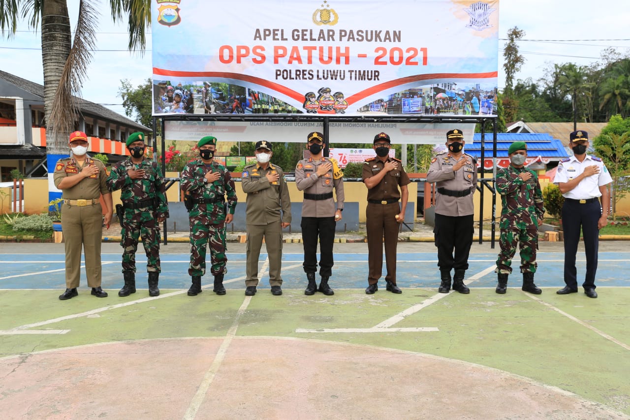 LUWU TIMUR – Bupati Luwu Timur, H. Budiman menghadiri apel Gelar Pasukan Operasi Patuh 2021 di halaman Mapolres Luwu Timur, Senin (20/9/2021). Bertindak sebagai pemimpin apel tersebut Kapolres Luwu Timur, AKBP Silvester Mangombo Marusaha Simamora.