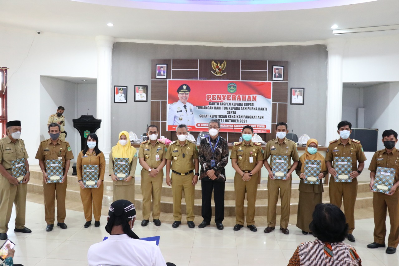 Selain Bupati yang menerima kartu Taspennya, kegiatan tersebut juga dirangkaikan dengan penyerahan secara simbolis Tunjangan Hari Tua kepada 4 orang ASN yang telah mencapai BUP, SK Kenaikan Pangkat untuk 306 ASN dan usulan Kenaikan Pangkat untuk 322 ASN TMT 01 Oktober 2021 yang dilakukan oleh Bupati Luwu Timur, H. Budiman, didampingi Sekda Lutim, H. Bahri Suli, Pimpinan PT. Taspen Cabang Palopo, Sutrisno dan Kepala Badan Kepegawaian dan Pengembangan Sumber Daya Manusia, Kamal Rasyid, S.STP. (ikp/kominfo)