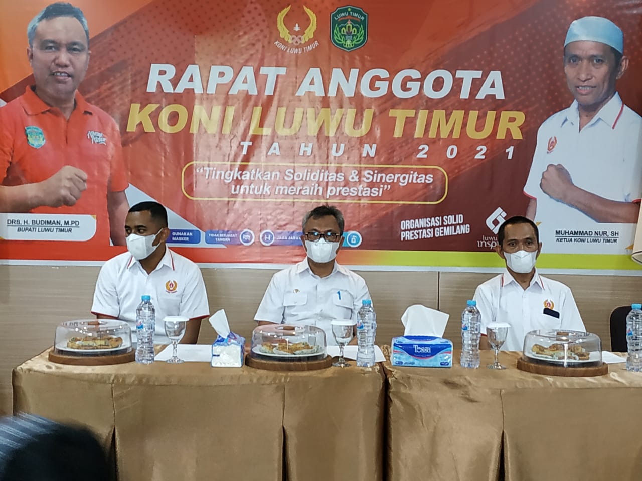 LUWU TIMUR – Komite Olahraga Nasional Indonesia (KONI) Kabupaten Luwu Timur melaksanakan rapat anggota tahun 2021 dengan tema “Tingkatkan Soliditas dan Sinergitas Untuk Meraih Prestasi”. Rapat anggota KONI dibuka langsung Bupati Luwu Timur, H. Budiman, di Aula Hotel Golden House, Rabu (06/10/2021).