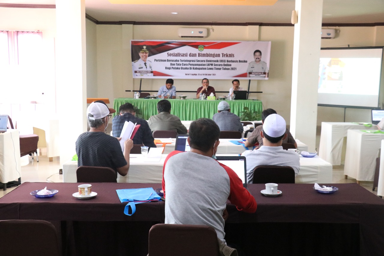 LUWU TIMUR – Dinas Penanaman Modal dan Pelayanan Terpadu Satu Pintu (DPMPTSP) Kabupaten Luwu Timur menggelar Sosialisasi dan Bimbingan Teknis (Bimtek) Perizinan Berusaha Terintegrasi Secara Elektronik Berbasis Resiko dan Tata Cara Penyampaian LKPM secara Online Bagi Pelaku Usaha di Lutim Tahun 2021.