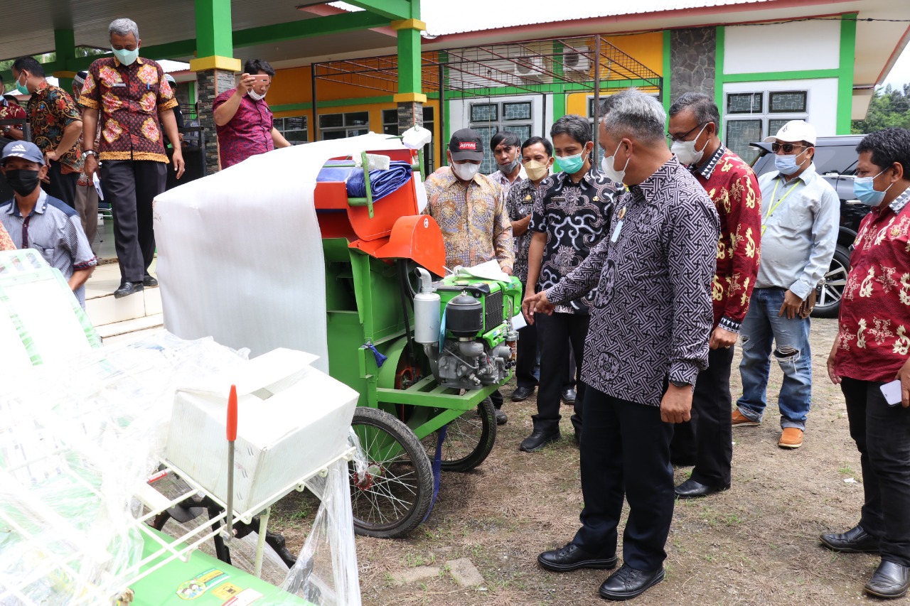 “Dengan memanfaatkan alsintan, produktivitas tenaga kerja diharapkan akan meningkat karena tujuan utama dari pemanfaatan alsintan salah satunya untuk mempersingkat waktu pengolahan tanah, mempercepat waktu penanaman sehingga ada kesempatan waktu tanam maupun keserempakan waktu panen,” tambah Bupati.