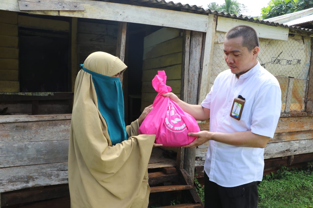 “Ini ada sedikit bantuan, semoga bisa bermanfaat dan membantu kebutuhan ibu dan keluarga sehari-hari,” ujar H. Muharif seraya menyerahkan bantuan.