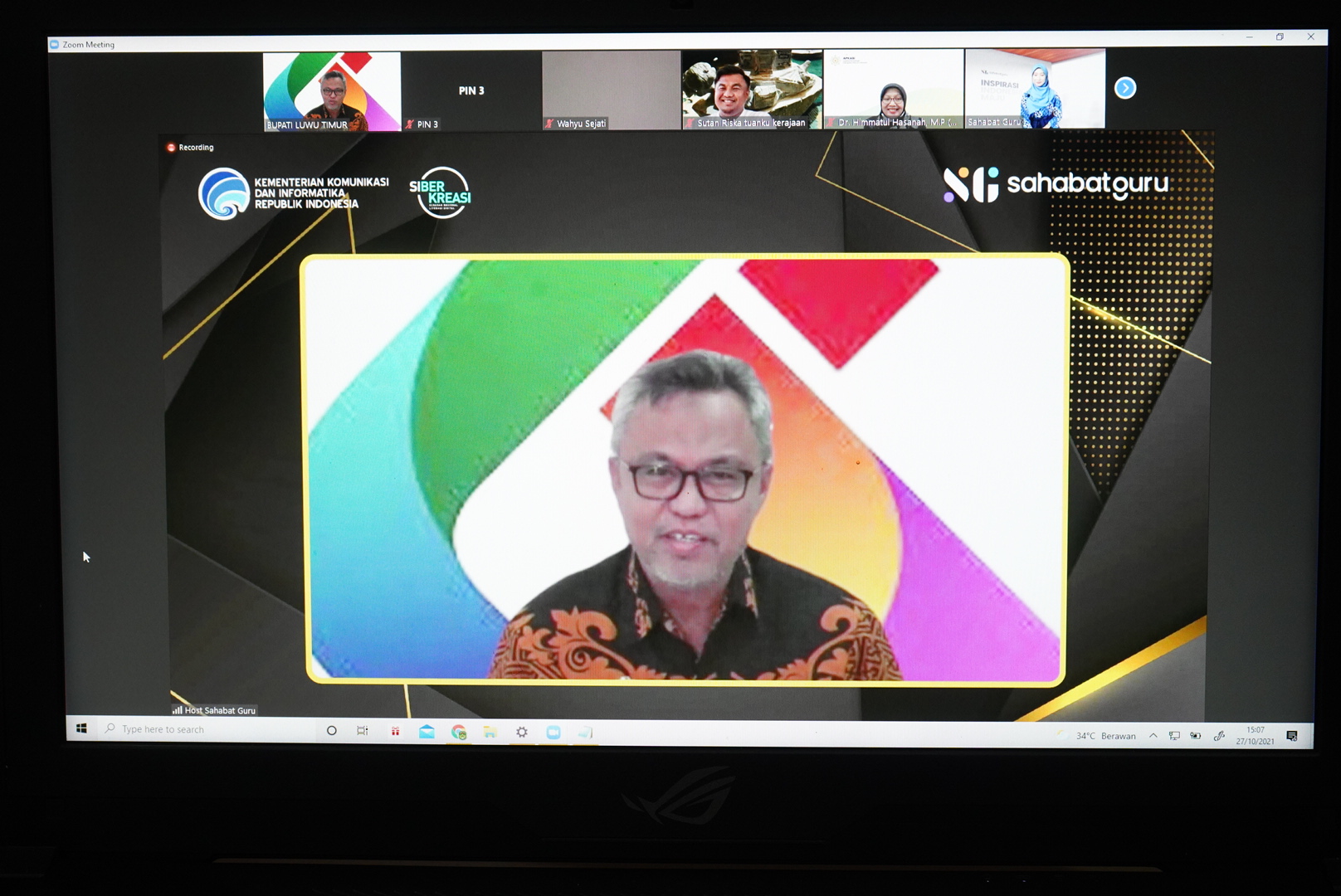 LUWU TIMUR – Kementerian Komunikasi dan Informatika (Kominfo) RI Bekerjasama dengan Asosiasi Pemerintah Kabupaten Seluruh Indonesia (APKASI) melaksanakan webinar pendidikan “Sahabat Guru” Kabupaten Dharmasraya Provinsi Sumatera Barat yang berlangsung secara virtual dengan tema mewujudkan guru cakap bermedia digital, cakap numerasi dan berkarakter dalam menghadapi tantangan global, Rabu (27/10/2021).