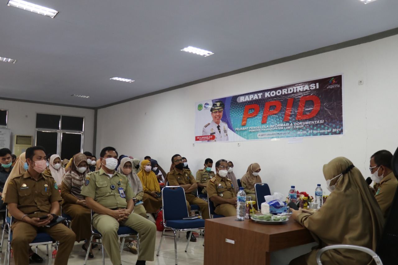 Rapat koordinasi ini dipimpin langsung Sekretaris Daerah Kabupaten Luwu Timur, H. Bahri Suli selaku atasan PPID Utama. Hadir pula kepala Dinas Pendidikan, La Besse, Kepala Dinas Tarkim, Zainuddin, Sekretaris Dinas Kominfo, Novia Syahriani dan seluruh PPID Pelaksana di masing-masing Satuan Kerja Perangkat Daerah (SKPD).