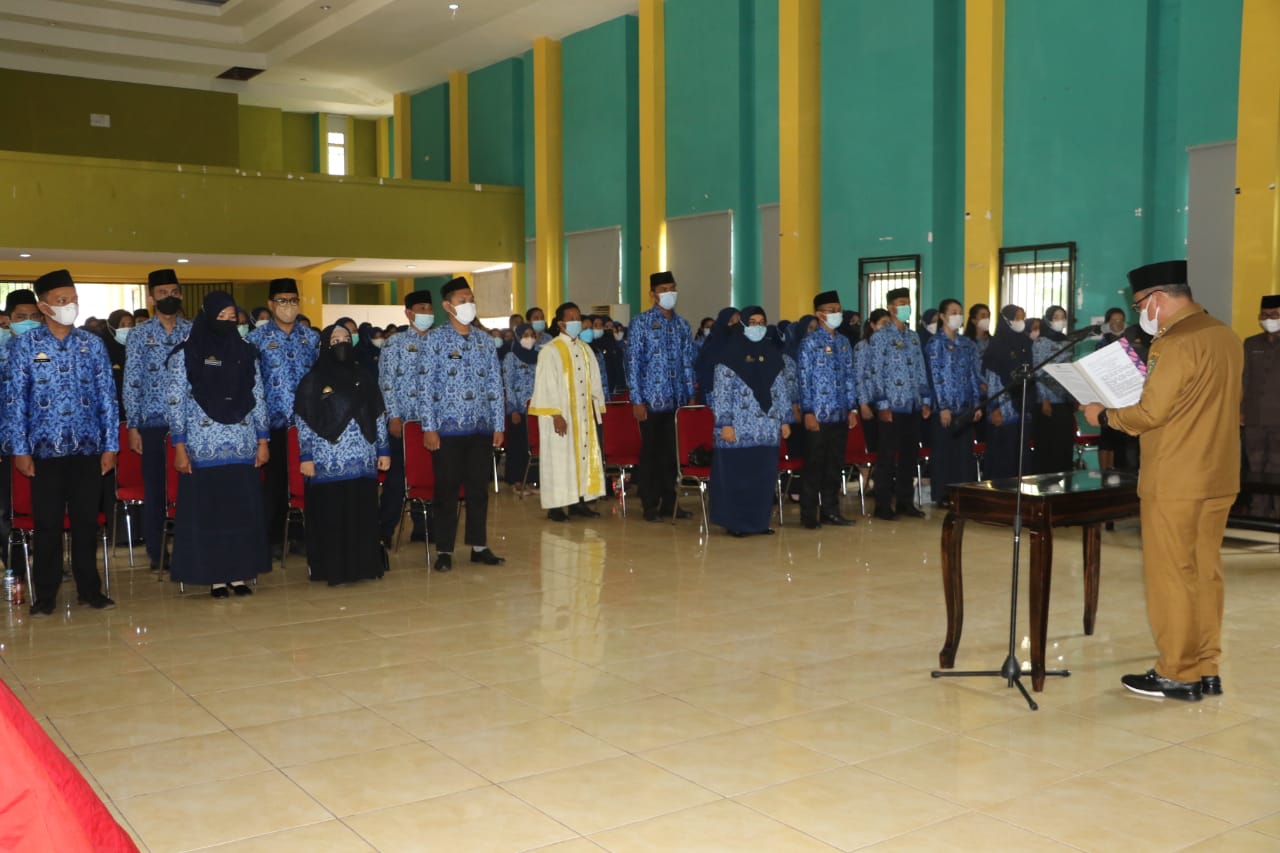LUWU TIMUR – Bupati Luwu Timur, H. Budiman memimpin pengambilan Sumpah/janji bagi 237 PNS di lingkup Pemerintah Kabupaten Luwu Timur, Pengambilan Sumpah/Janji teraebut berlangsung di Gedung Wanita Simpurusiang, Puncak Indah Malili, Kamis (04/11/2021).