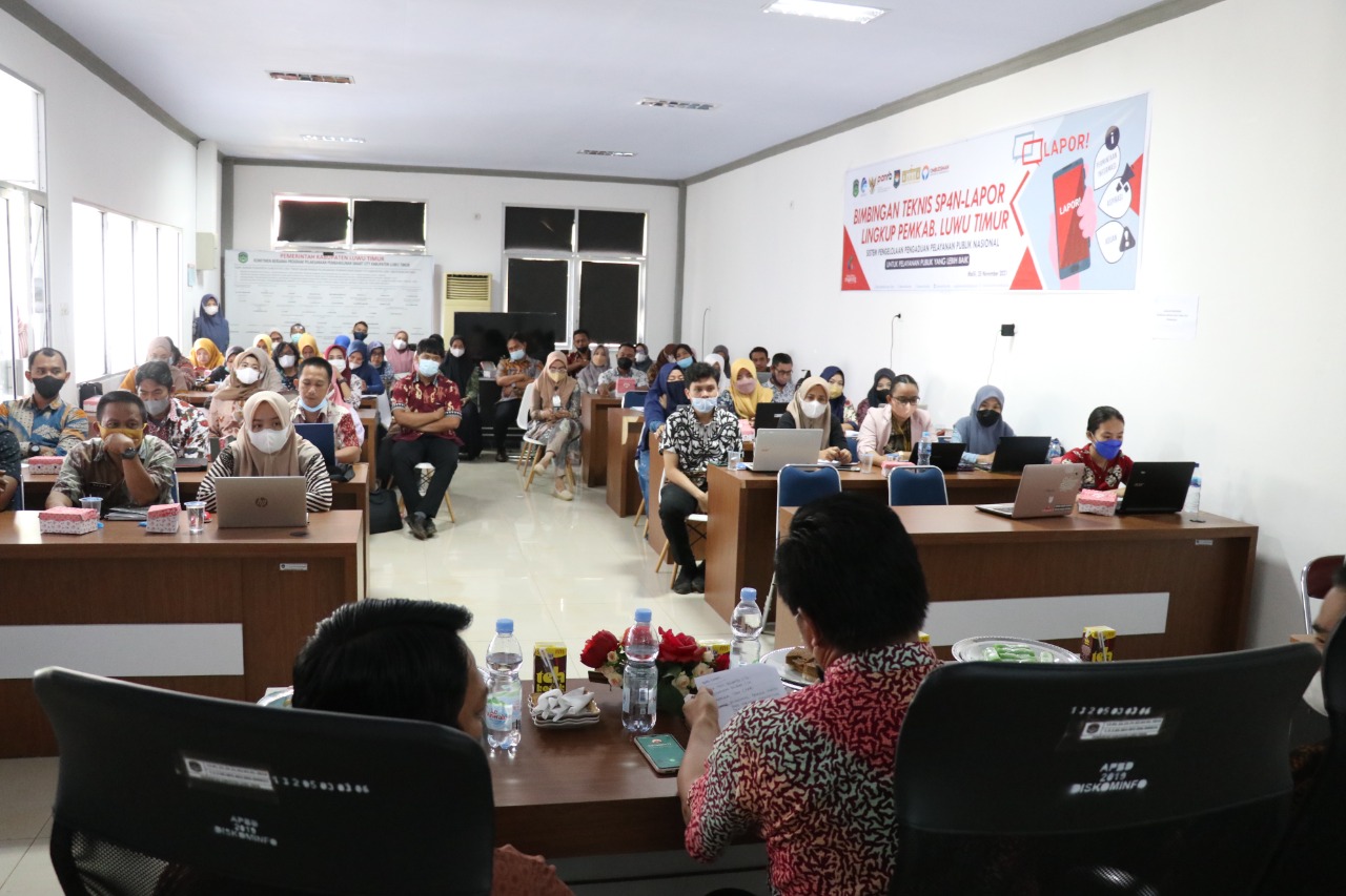 LUWU TIMUR – Guna memberikan pengetahuan teknis kepada para admin/pejabat penghubung seluruh SKPD Lingkup Pemkab Luwu Timur terkait pengelolaan Aplikasi Sistem Pengelolaan Pelayanan Publik Nasional (SP4N) Layanan Pengaduan Online Rakyat (LAPOR) Pengaduan SP4N-LAPOR, Pemerintah Kabupaten Luwu Timur melalui Dinas Komunikasi dan Informatika mengelar Bimbingan Teknis SP4N-LAPOR Bagi Admin dan Pejabat Penghubung SKPD di lingkup Pemkab. Luwu Timur, bertempat di ruang Media Center/Gedung PPID Kamis (25/11/2021).
