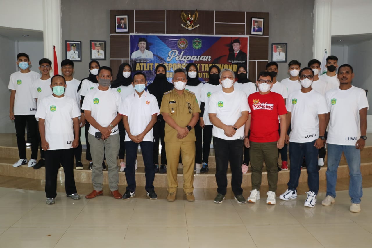 LUWU TIMUR – Bupati Luwu Timur, H. Budiman melepas Atlit Taekwondo Kabupaten Luwu Timur ke Kabupaten Tana Toraja untuk mengikut kompetisi Praporprov. Pelepasan dilakukan di rumah jabatan Bupati, Selasa (30/11/2021), yang ditandai dengan penyerahan bantuan alat olah raga Taekwondo oleh Bupati Luwu Timur dan Ketua Taekwondo Luwu Timur, H. Usman Sadik kepada dua orang perwakilan atlit.