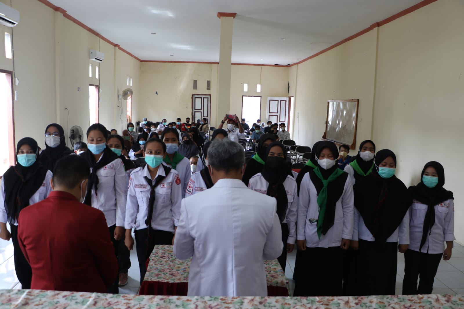 LUWU TIMUR – Bupati Luwu Timur, H. Budiman selaku Ketua Palang Merah Indonesia (PMI) Cabang Luwu Timur melantik relawan Korps Sukarela Palang Merah Indonesia (KSR- PMI). Relawan yang dilantik berasal dari KSR PMI Unit 001 Sekolah Tinggi Kesehatan (STIKES) Batara Guru periode 2020 -2021.