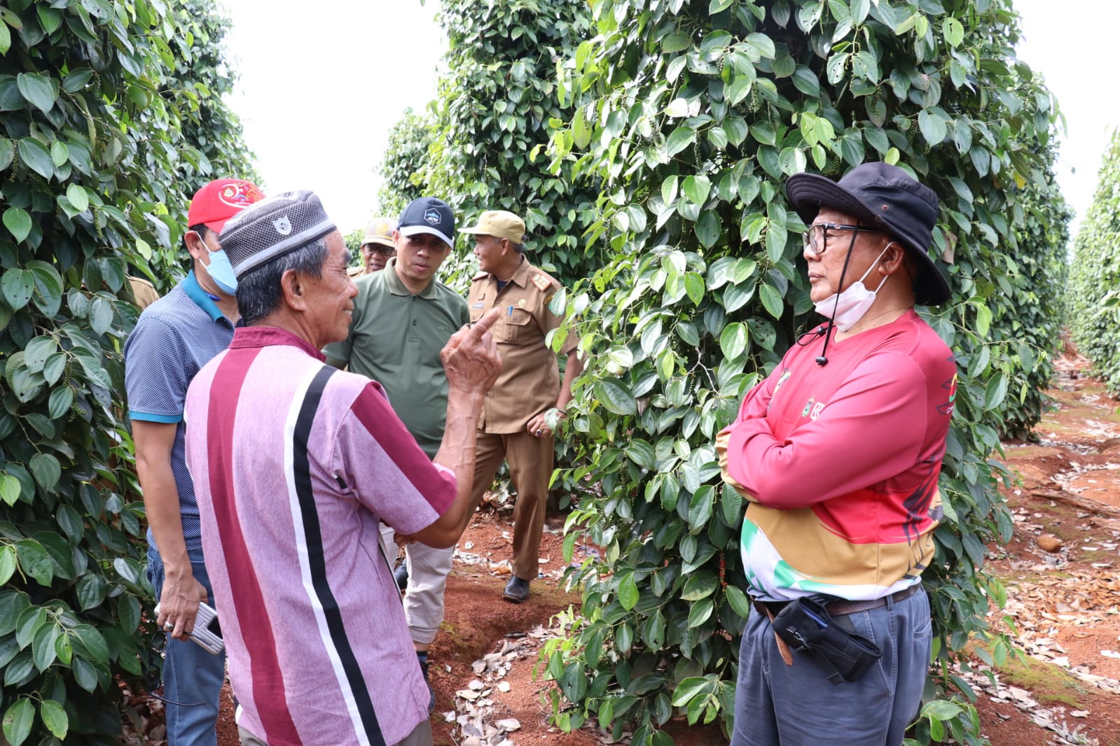 Usai meninjau kebun Lada Kades Bantilang, rombongan kembali melanjutkan perjalanan untuk melihat kebun merica milik H. Baharuddin yang ada di Desa Rante Angin. Disini, rombongan dari Tim STP Unhas juga berbincang dan menanyakan beberapa hal terkait kebun merica milik H. Baharuddin.
