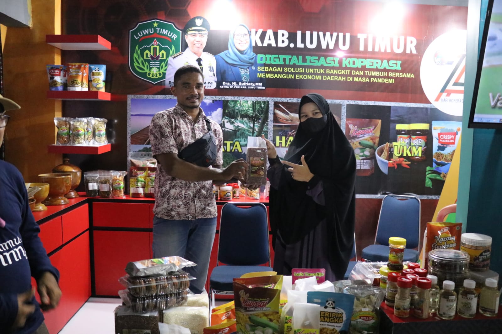 LUWU TIMUR – Hari pertama digelarnya Pameran Expo dalam rangka memperingati Hari Koperasi Nasional (Harkopnas) ke 74 tingkat Provinsi Sulawesi Selatan Tahun 2021 di Kabupaten Sinjai, produk-produk pameran Luwu Timur laku keras.