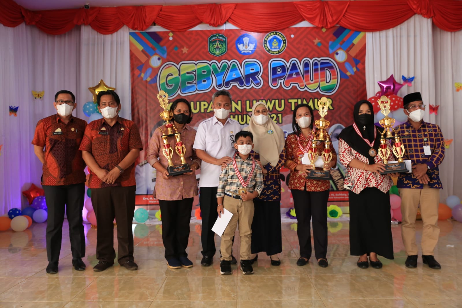 Demikian dikatakan Bupati Luwu Timur, H. Budiman saat menutup kegiatan Gebyar PAUD Tingkat Kabupaten Luwu Timur yang dipusatkan di Aula Dinas Pendidikan, Kamis (15/12/2021). Selain Bupati, acara ini juga dihadiri Bunda PAUD Kabupaten Luwu Timur, Sufriaty dan Kadis Pendidikan, La Besse serta anak-anak, para peserta lomba Gebyar PAUD, orang tua, dan guru pendamping.