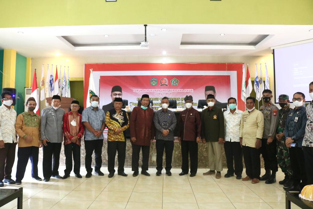 LUWU TIMUR – Forum Kerukunan Umat Beragama (FKUB) Kabupaten Luwu Timur mengadakan Rapat Koordinasi (Rakor) Lintas Agama dengan tema Focus Group Discussion (FGD) “Penyamaan Persepsi Moderasi Beragama dan Peneguhan Kebhinekaan NKRI”. Rakor ini di buka langsung oleh Bupati Luwu Timur, H. Budiman di Gedung Wanita Simpurusiang Malili, Kamis, (16/12/2021).