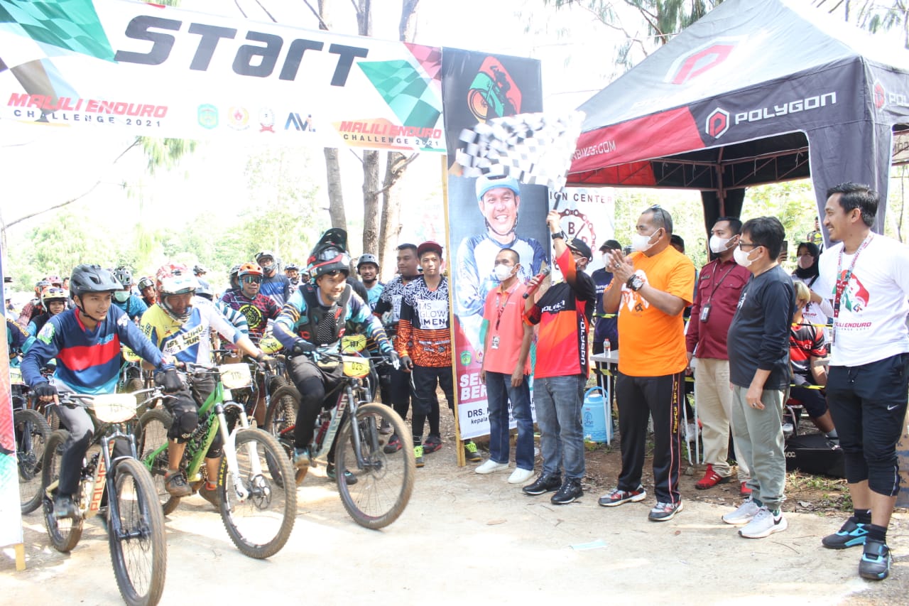 LUWU TIMUR – Ratusan peserta rider Malili Enduro Challenge 2021 resmi dilepas Bupati Luwu Timur, H. Budiman di Lokasi Verbeck Bike Park Puncak Indah Malili. Pelepasan peserta di tandai pengangkatan bendera start oleh Bupati didampingi Kadis Pariwisata Budaya Pemuda dan Olahraga, Hamris Darwis, Minggu (19/12/2021).