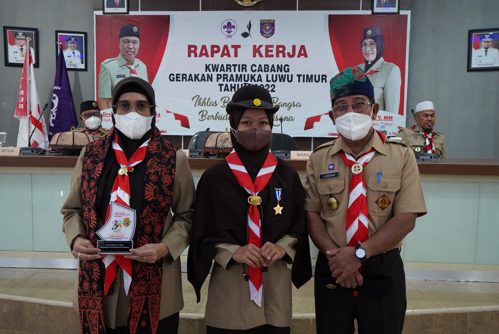 Pada rapat kerja itu pula, salah seorang peserta perkemahan Wirakarya Nasional, kakak Herawati menyerahkan Cinderamata kepada Ketua Kwarcab Luwu Timur, Hj. Sufriaty dan Ketua Harian Kwarcab Luwu Timur, La Besse. (hms/ikp/kominfo)