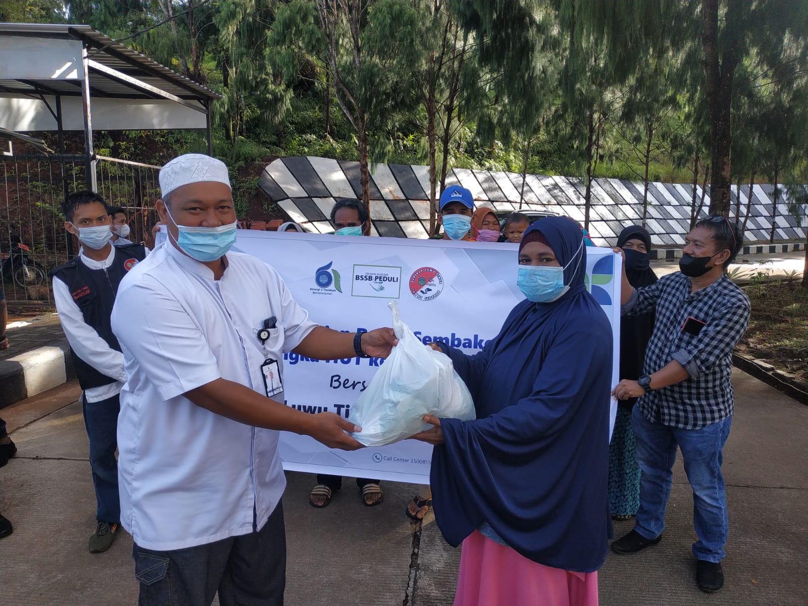 Sebelum menuju langsung ke lokasi sasaran target sedekah di Desa Pasi-Pasi. Tim dari Bank Sulselbar sebelumnya menyerahkan kurang lebih 15 paket sedekah untuk para petugas kebersihan atau cleaning services di Halaman Kantor Bupati Luwu Timur. (hms/ikp/kominfo)