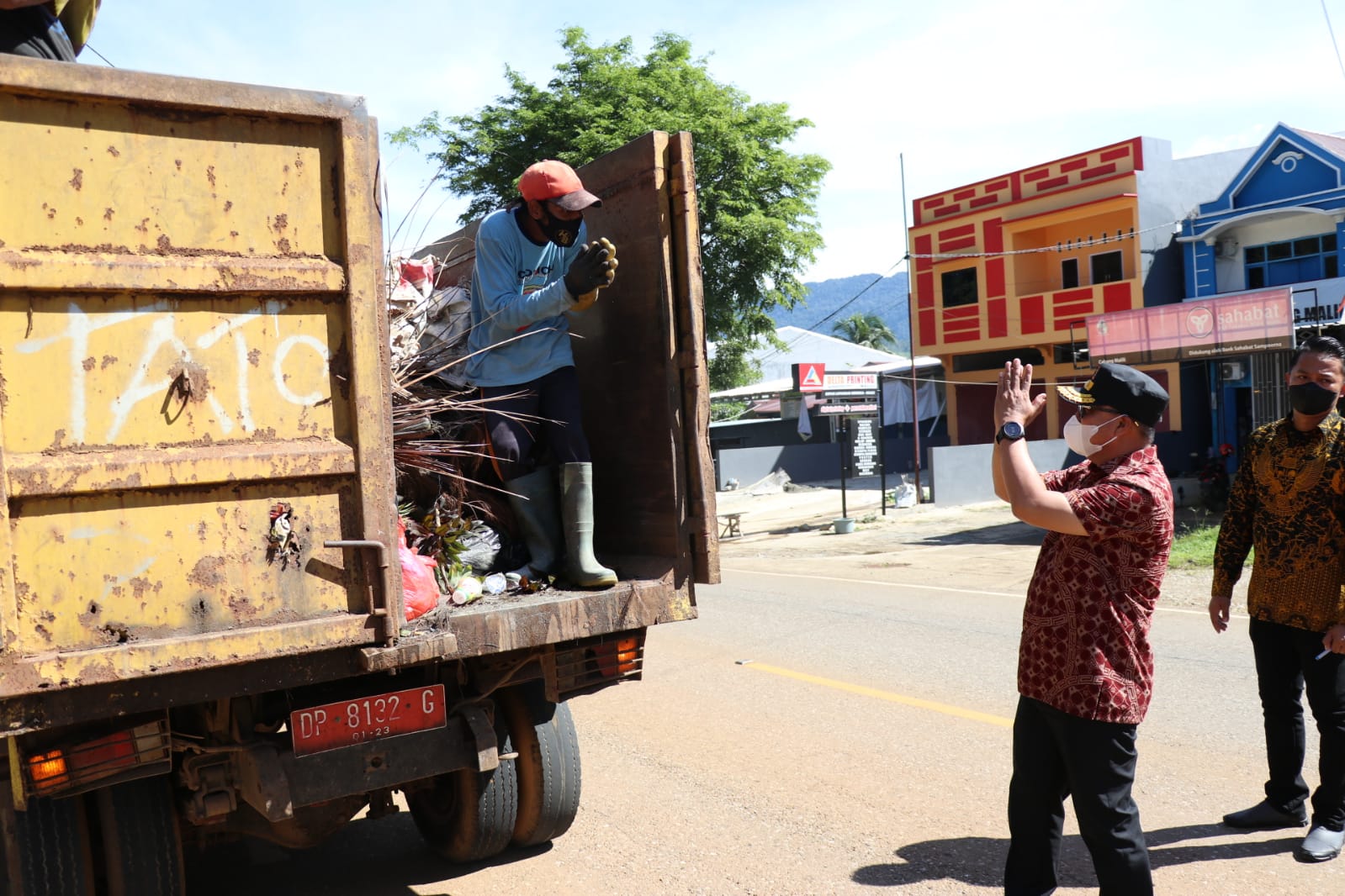 Pada kesempatan ini juga, Bupati Luwu Timur menyempatkan menyapa para petugas kebersihan kota yang sedang melaksanakan tugasnya. “Terima kasih bapak-bapak, sehat-sehat ki semua,” ucap Budiman.