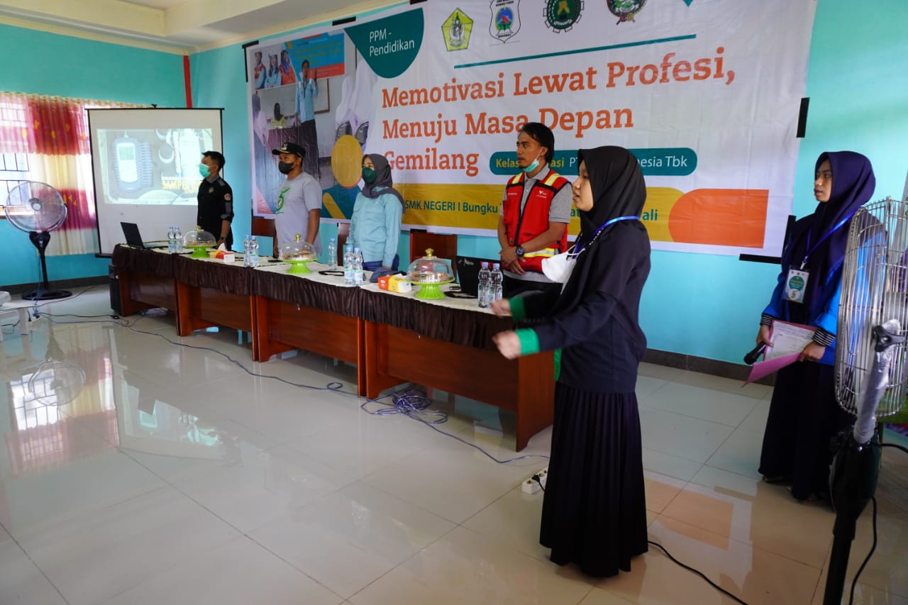 PT Vale Indonesia Tbk (PT Vale) berbagi inspirasi profesi dengan para pelajar SMA/SMK dalam Kelas Motivasi yang berlangsung di Aula SMKN 1 Bungku Timur, Desa Kolono, Kecamatan Bungku Timur, Kabupaten Morowali, Sulawesi Tengah, pada 22 Januari 2022. Kegiatan ini merupakan bagian dari Program Pengembangan dan Pemberdayaan Masyarakat (PPM) PT Vale di wilayah pemberdayaan, khususnya dalam bidang pendidikan.