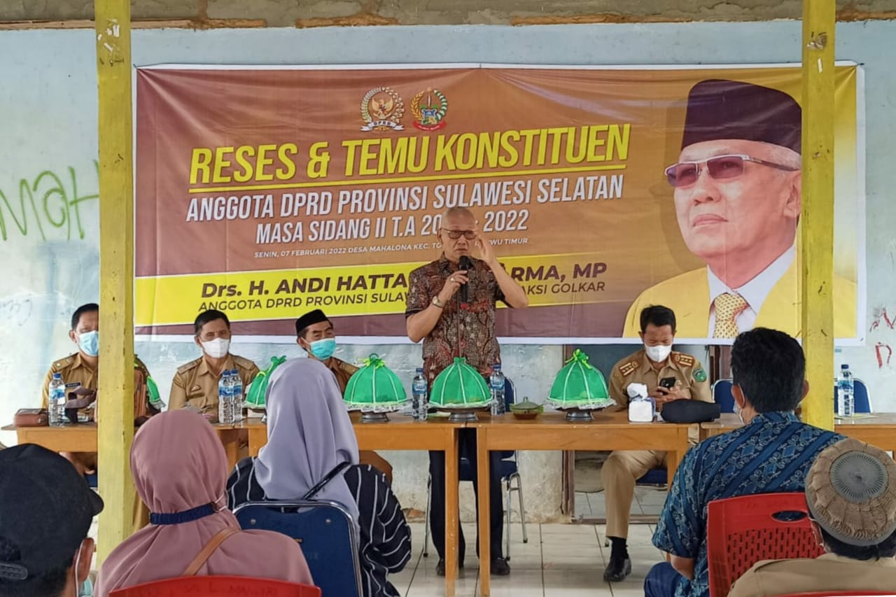 Terkait dengan kegiatannya yakni reses dan temu konstituen, Andi Hatta mengatakan bahwa tujuannya untuk menyerap aspirasi masyarakat, dan nantinya akan disampaikan ke Gubernur melalui SKPD untuk beberapa program yang bisa masuk ke desa-desa.