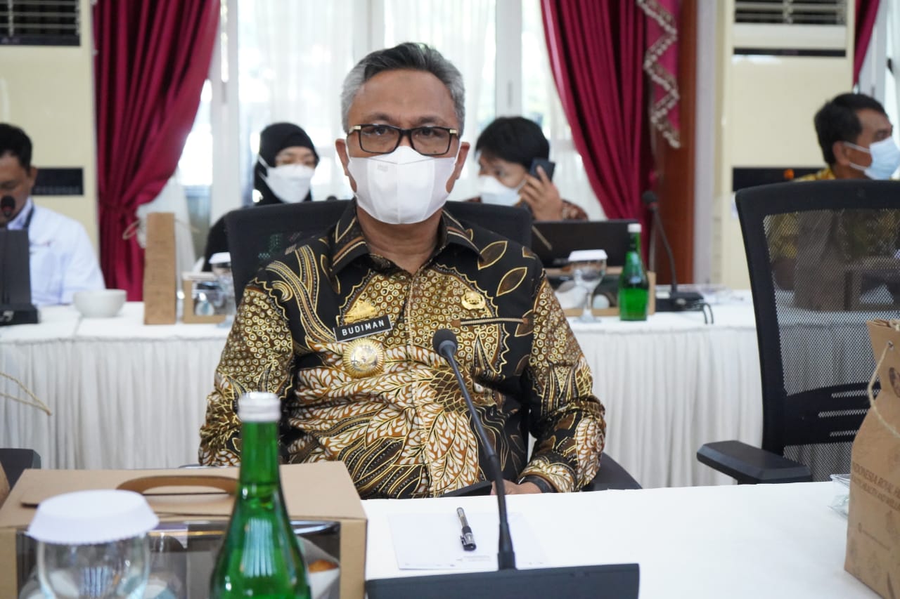 Bupati Luwu Timur Budiman saat menghadiri Rakor Kebijakan Peningkatan Pembelian dan Penggunaan Produk Dalam Negeri dalam rangka Bangga Buatan Indonesia di Baruga Karaeng Pattingallang, Rujab Gubernur Sulsel, Kamis (24/02). (Foto: hms/ikp/kominfo-sp)