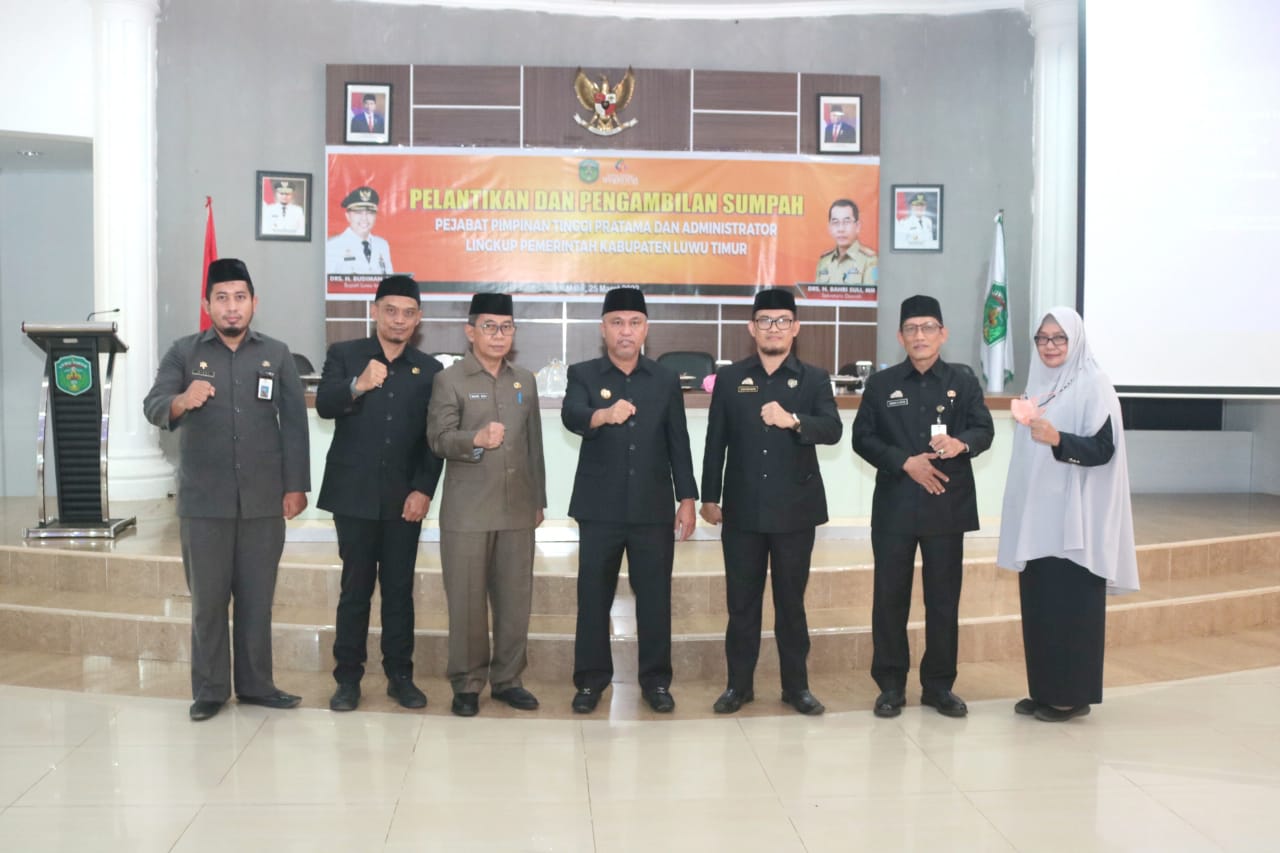 Pelantikan tersebut dihadiri oleh Sekretaris Daerah, H. Bahri Suli, Perwakilan Kejaksaan Negeri Luwu Timur, Staf Ahli dan segenap Kepala Organisasi Perangkat Daerah (OPD), di Aula Rumah Jabatan Bupati, Jumat (25/03/2022).