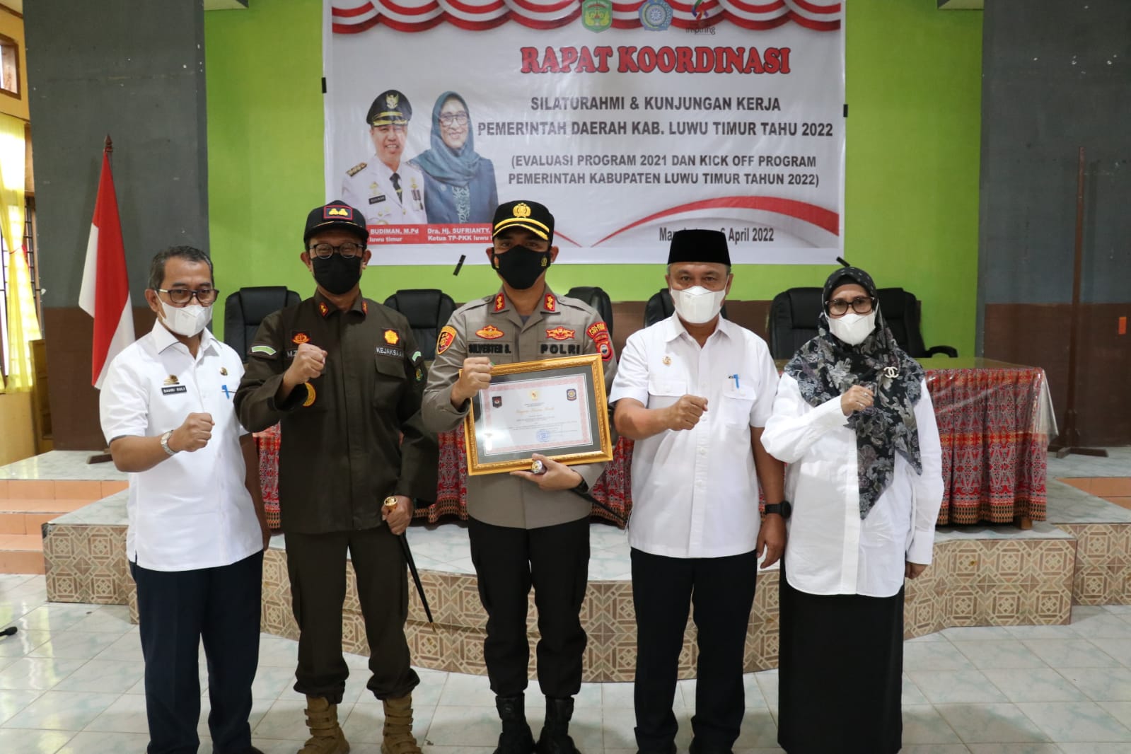 Pada kesempatan ini, Bupati Luwu Timur, H. Budiman menandatangani Prasasti Bangunan SMPN 2 Mangkutana dan mewakili Menteri Dalam Negeri RI menyerahkan piagam penghargaan kepada Kapolres Luwu Timur, AKBP. Silvester Mangombo Marusaha Simamora yang telah berkolaborasi dengan Satpol PP Lutim dalam pencapaian vaksinasi covid19.