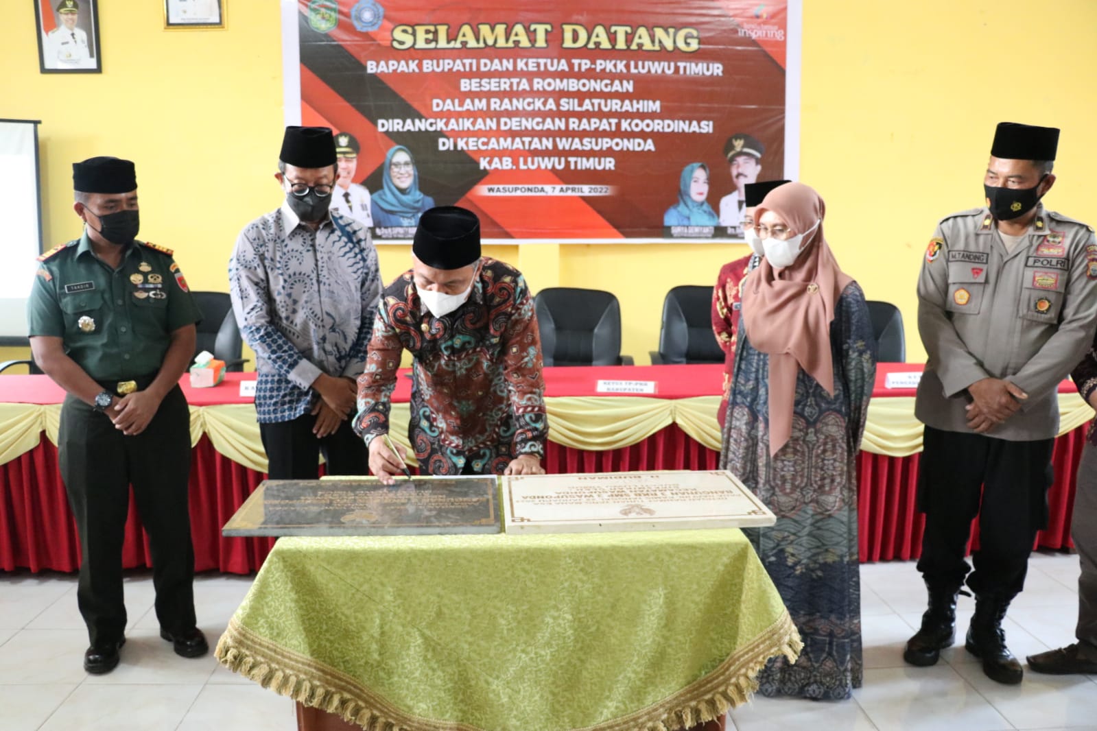 Pada kesempatan ini, Bupati Luwu Timur, H. Budiman didampingi Kajari Lutim, Muh. Zubair, Ketua Pengadilan Agama Malili, Sekda, H. Bahri Suli, Ketua TP PKK Lutim, Hj. Sufriaty, Danramil, Kapolsek, dan Kadis Pendidikan dan Kebudayaan, La Besse, menandatangani Prasasti Bangunan RKB SDN 250 Wasuponda dan Bangunan 3 ruang kelas belajar SMPN 3 Wasuponda. (rhj)