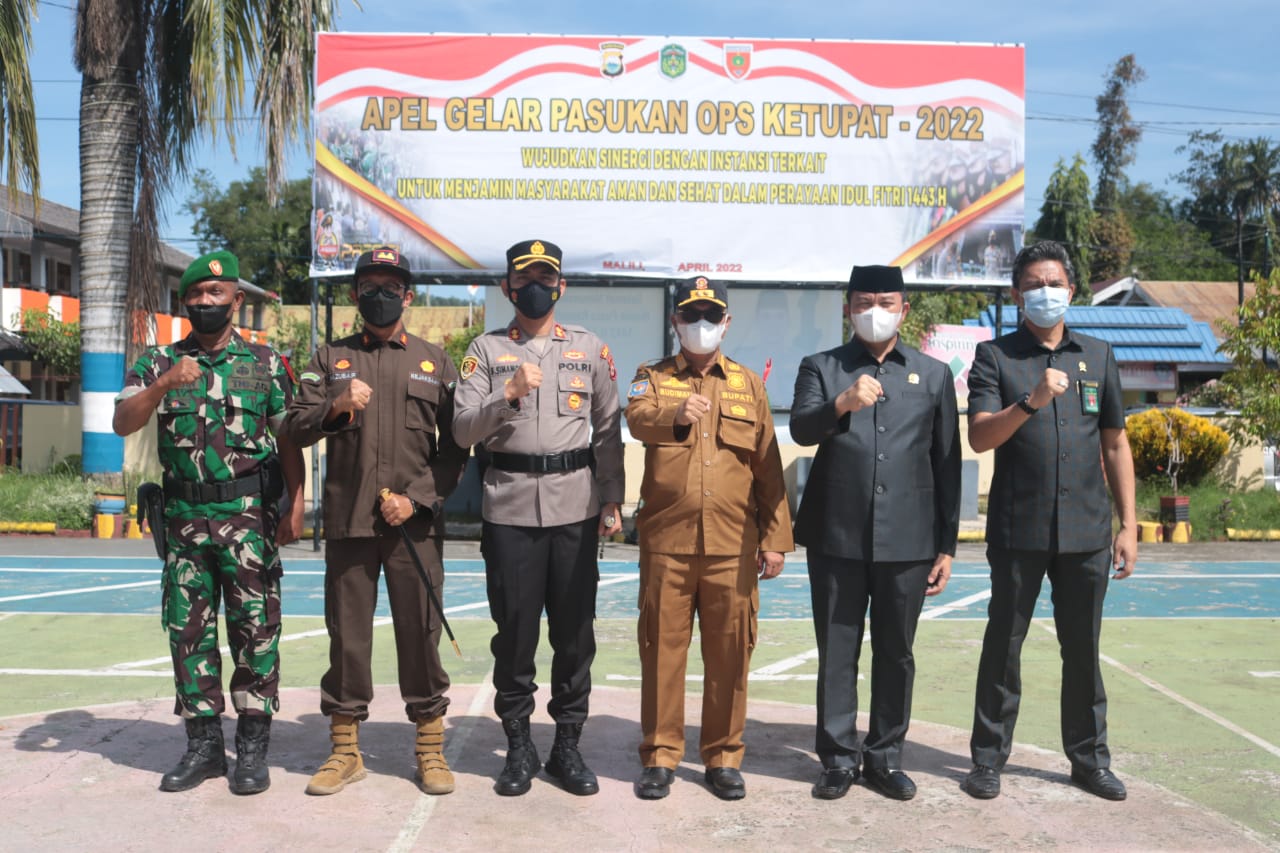 LUWU TIMUR – Bupati Luwu Timur, H. Budiman, bertindak sebagai Inspektur Upacara (irup) pada Apel Pasukan Operasi Ketupat Tahun 2022 yang digelar Polres Luwu Timur Jelang Mudik Lebaran dalam rangka cipkon Kamseltibcarlantas di wilayah Kabupaten Luwu Timur yang bertempat di Lapangan Polres Lutim Jumat (22/04/2022).