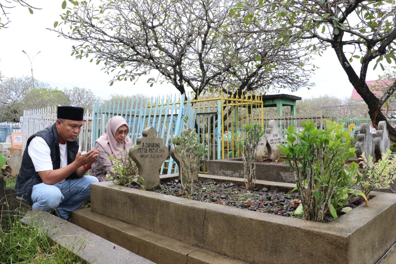 Orang nomor satu di Bumi Batara Guru ini menyempatkan diri bersama istri berkunjung ke makam kedua mertuanya di Pekuburan Islam TPU Panaikang, Makassar, Ahad (08/05/2022).