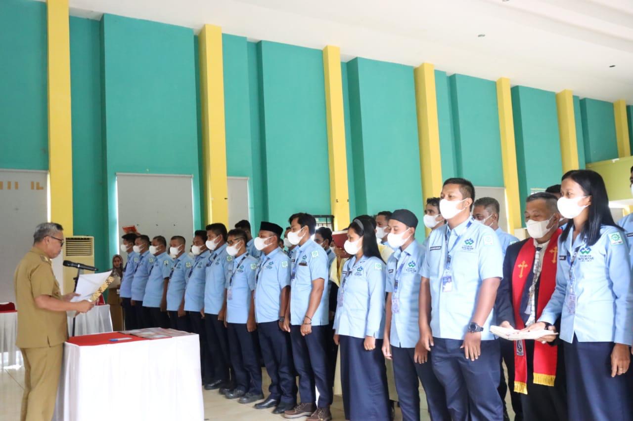 Selain pelantikan, juga dilakukan pendatanganan Fakta integritas serta kontrak kerja, Pejabat Manajemen Perusahaan Umum Daerah Air Minum (Perumdam) Waemami Lutim.
