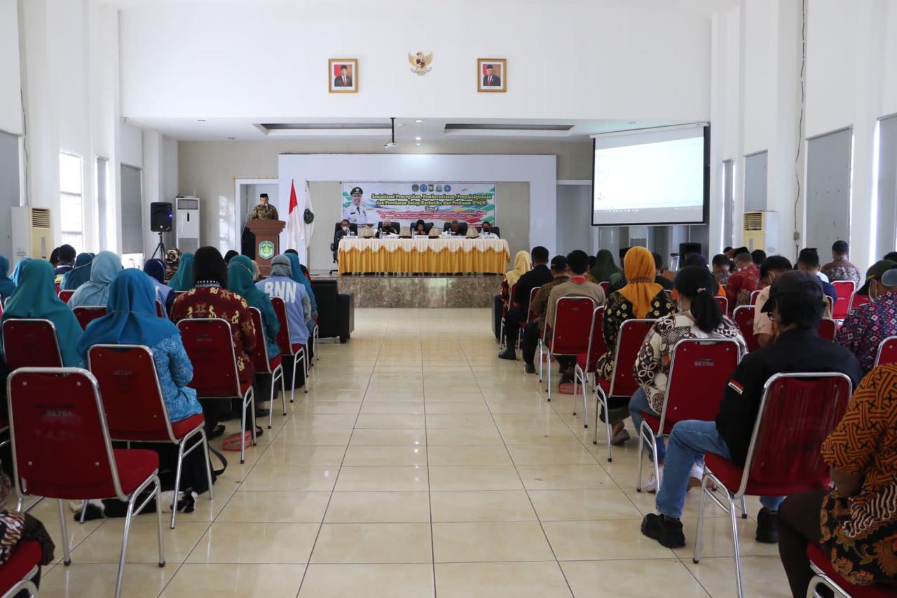 LUWU TIMUR – Mewakili Bupati Luwu Timur (Lutim), H. Budiman, Asisten Pemerintahan dan Kesejahteraan Rakyat (Kesra) Lutim, Aini Endis Anrika didampingi Forkopimda Lutim, Kepala Kesbangpol, Guntur Hafid, Sub Koordinator Bidang Pencegahan dan Pemberdayaan Masyarakat (P2M) BNN Kota Palopo, Andi Werru Kambau, secara resmi membuka Sosialisasi Pencegahan dan Pemberantasan Penyalagunaan dan Peredaran Gelap Narkotika dan Prekursor Narkotika (TP4GN) Lutim, di Gedung Wanita Simpursiang, Kamis (09/06/2022).