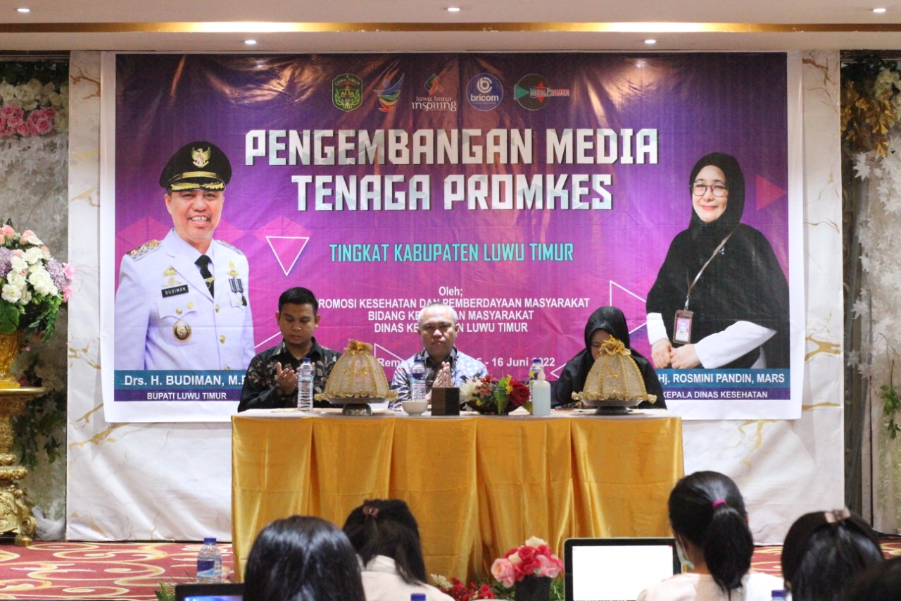 LUWU TIMUR – Bupati Luwu Timur, H. Budiman membuka kegiatan Pengembangan Media Tenaga Promkes yang diselenggarakan oleh Dinas Kesehatan di Hotel Remcy, Panakukang, Makassar, Rabu (15/06/2022).