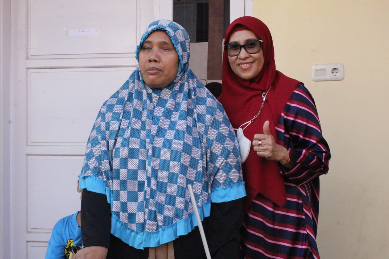 Begitu juga dengan ibu Bupati, usai mengobrol dengan salah seorang peserta cabang kaligrafi, Ia juga mengunjungi ibu Qomariah salah seorang peserta MTQ Lutim cabang seni baca Al-Qur’an Golongan Tartil Tuna Netra.