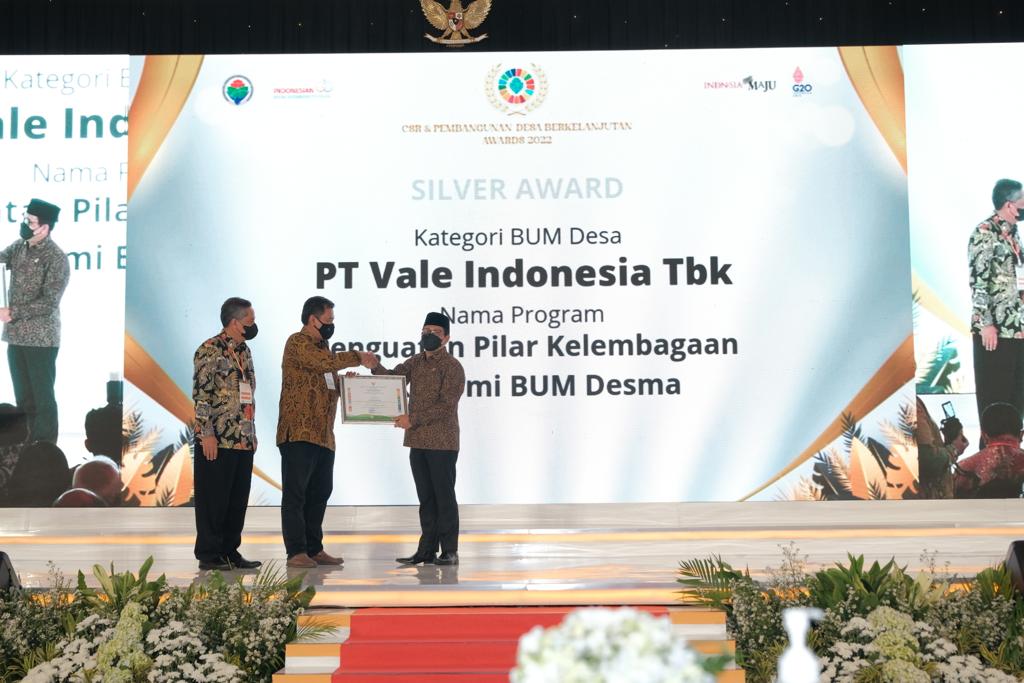 Dalam ajang yang diselenggarakan oleh Kementerian Desa dan Pembangunan Daerah Tertinggal dan Transmigrasi Republik Indonesia (Kemendes PDTT RI) bersama Indonesian Social Sustainability Forum (ISSF) tersebut PT Vale meraih penghargaan kategori Bumdesa dengan program “Penguatan Pilar Kelembagaan Ekonomi Bumdesma”.