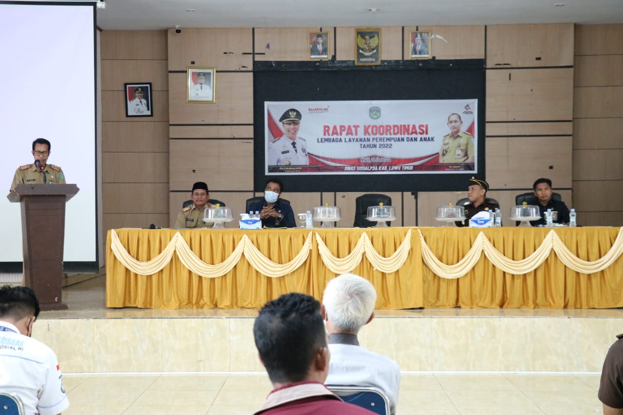 Hal tersebut disampaikan Staf Ahli Hukum dan Pemerintahan, dr. H. April saat mewakili Bupati Luwu Timur membuka Rapat Koordinasi Lembaga Layanan Perempuan dan Anak Tahun 2022 yang diselenggarakan Dinas Sosial Pemberdayaan Perempuan dan Perlindungan Anak Lutim, di Aula Dinas Pendidikan dan Kebudayaan, Selasa (28/06/2022).