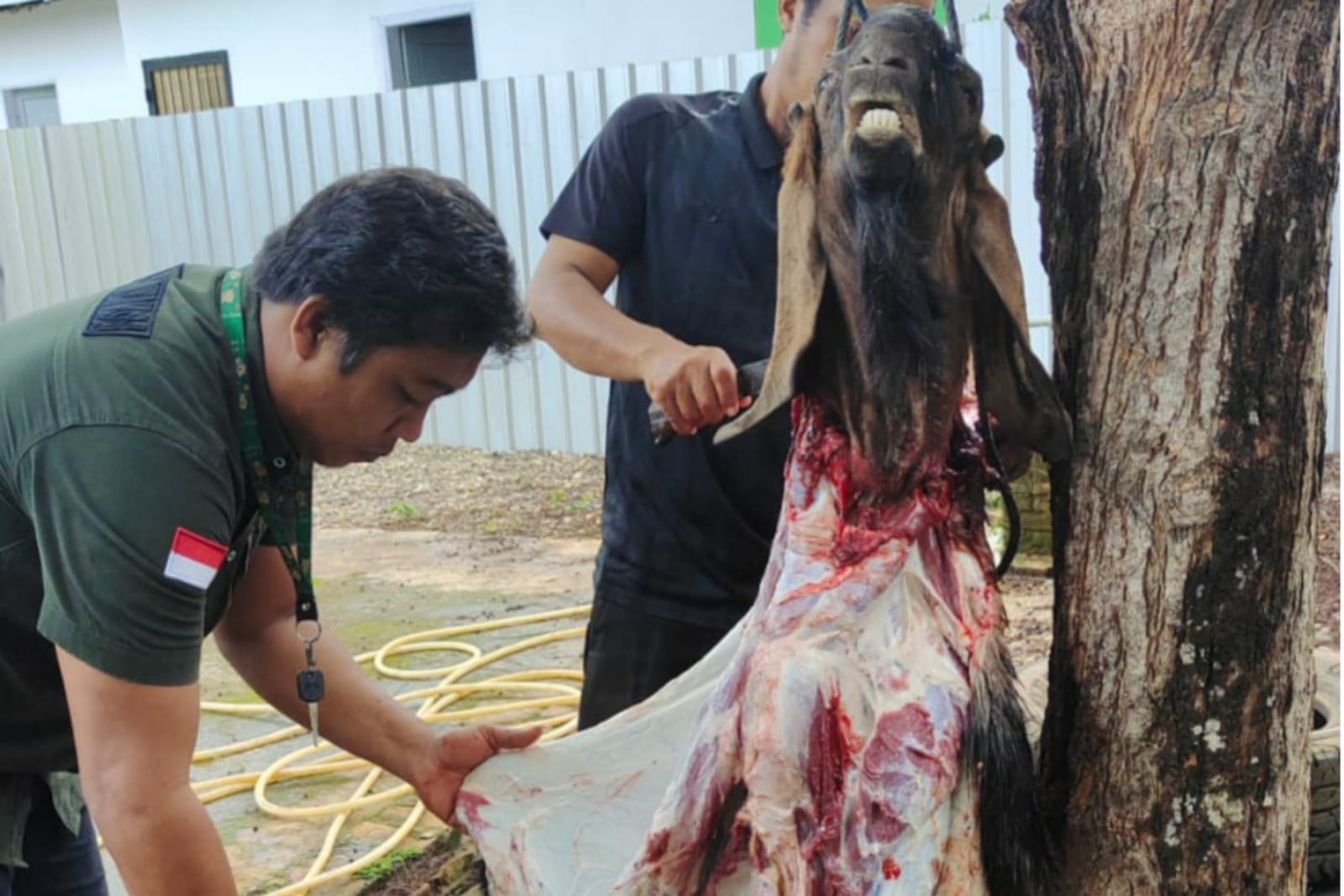 Penyembelihan hewan qurban ini digelar di halaman belakang Kantor Kejaksaan Negeri (Kejari) Luwu Timur, Desa Puncak Indah, Kecamatan Malili, Senin (11/07/2022).