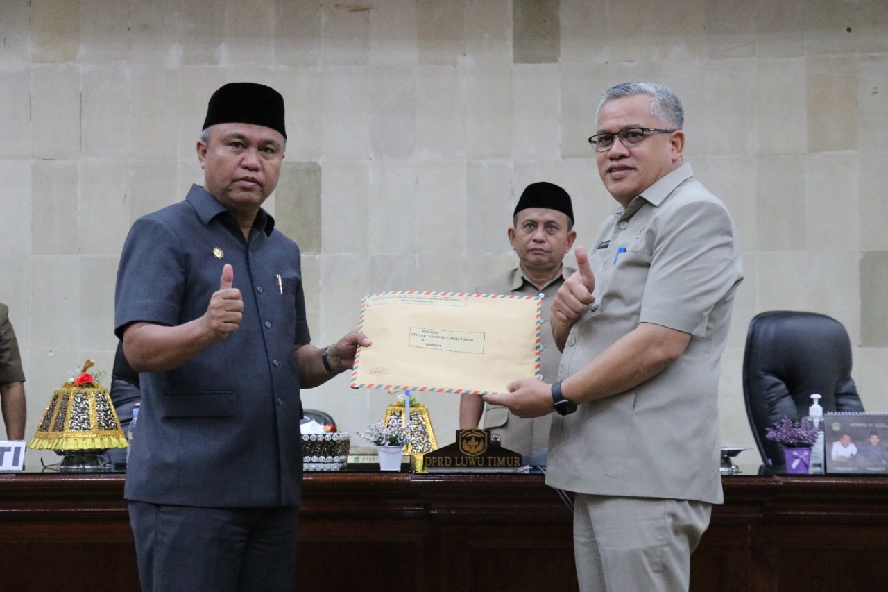 LUWU TIMUR – Bupati Luwu Timur, H. Budiman menyerahkan Rancangan Perubahan Kebijakan Umum Anggaran (KUA) dan Prioritas dan Plafon Anggaran Sementara (PPAS) Kabupaten Luwu Timur TA. 2022 kepada DPRD Luwu Timur.