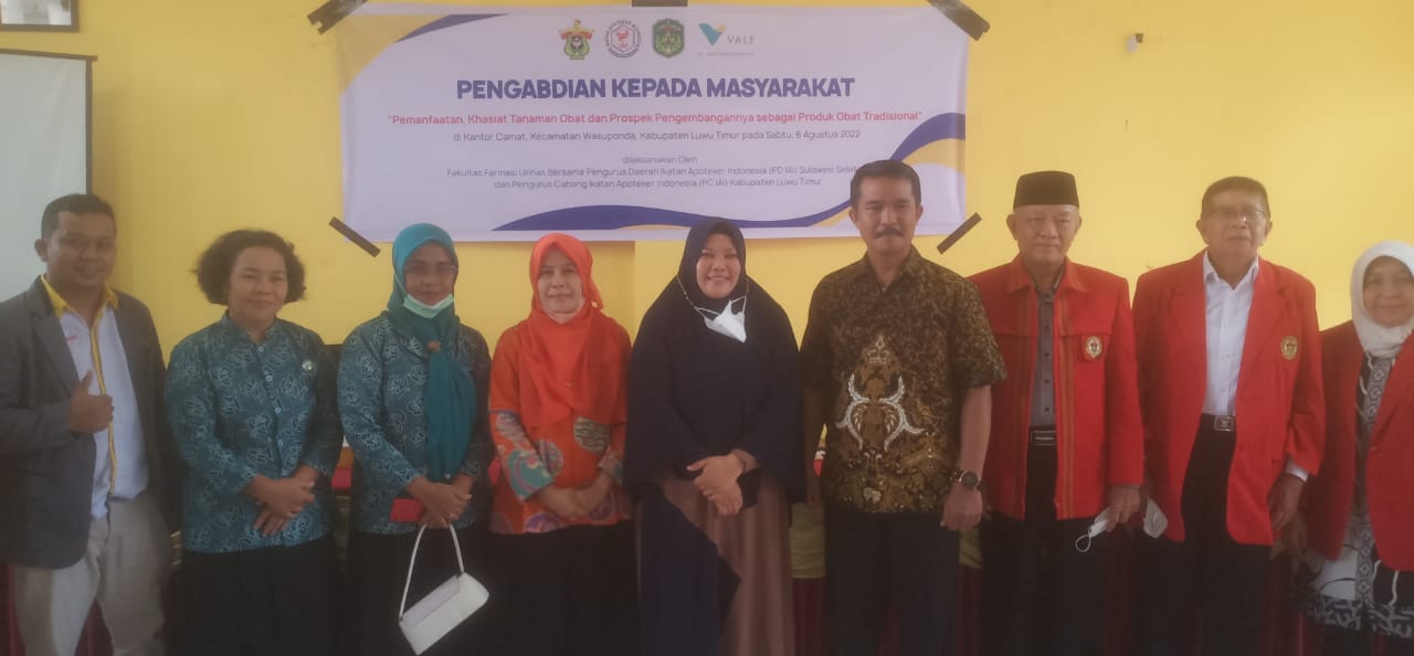 Tampak hadir, Camat Wasuponda, Bambang Andi Acang, Dekan Fakultas Farmasi Unhas, Prof. DR. Rer Nat beserta rombongan, dan Ketua PC Ikatan Apoteker Indonesia (IAI) Kabupaten Luwu Timur, Firman Mahjud.