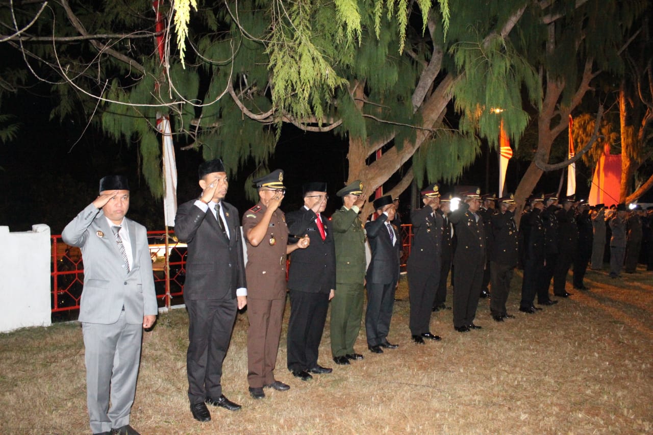 “Hari ini Selasa 16 Agustus 2022 pukul 23.45 Wita, pada upacara untuk memperingati akan jasa-jasa para pahlawan, TNI dan Polri 2 orang, Pejuang Rakyat 64 orang, Pahlawan Tak Dikenal 6 orang, menyatakan hormat yang sebesar-besarnya atas keihklasan dan kesucian pengorbanan saudara-saudara sebagai pahlawan dalam pengabdian terhadap perjuangan demi kebahagiaan negara dan bangsa,” ucap Kapolres.